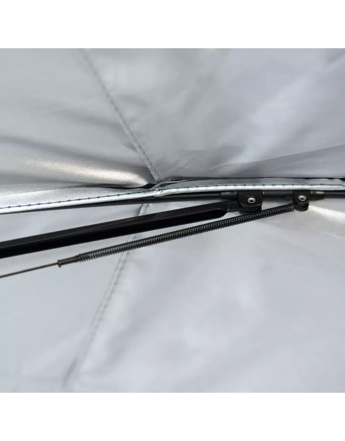 Paraguas de dimensiones amplias diseñado para soportar condiciones climáticas adversas gracias a su panel de doble capa de 130 cm de diámetro y a su tela impermeable.