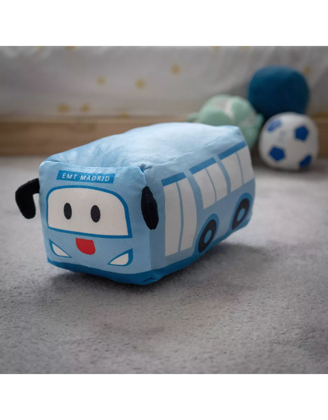 Adorable peluche de 25 cm de longitud en forma de autobús de EMT Madrid. Es suave al tacto y está fabricado en 100 % algodón y el relleno en 100 % poliéster. Perfecto para los pequeños aficionados al autobús.