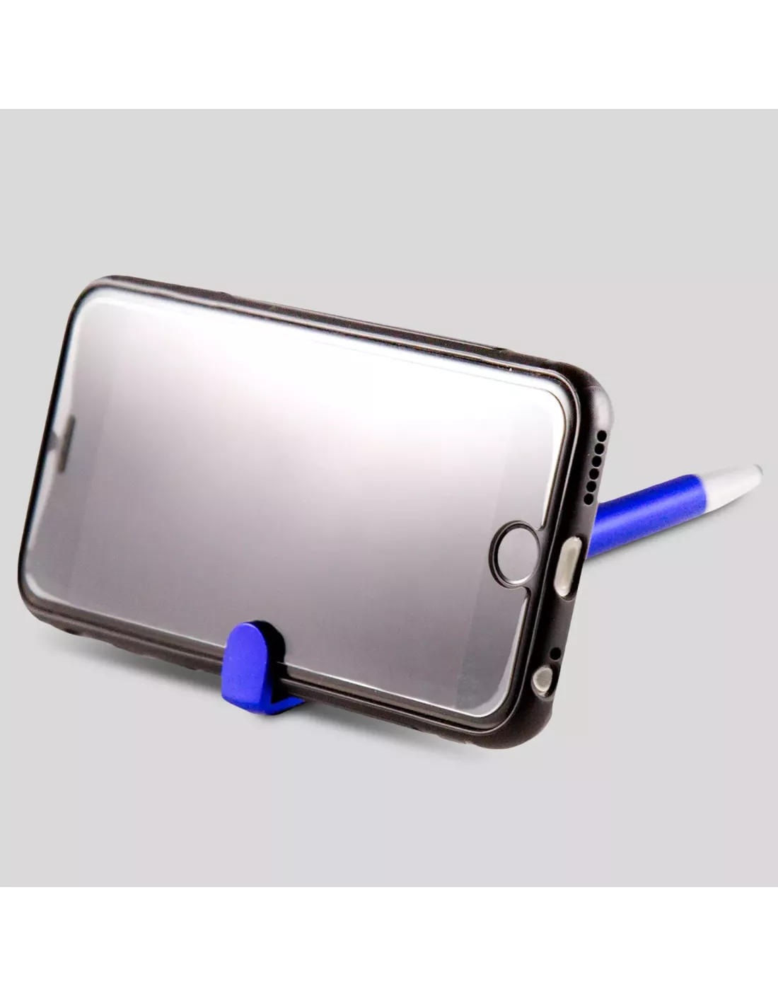 Bolígrafo con soporte en color azul.