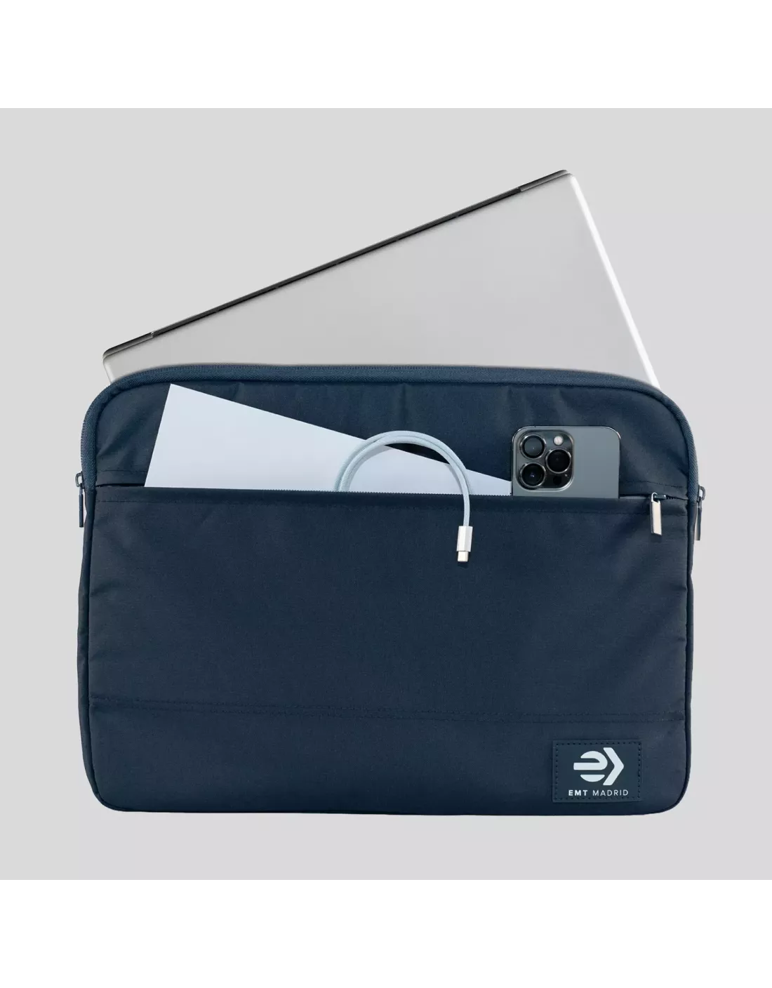 Funda de diseño clásico y amplio bolsillo frontal. Compatible con dispositivos de hasta 15,6", está confeccionada con poliéster reciclado e incorpora el marcador AWARE™, que certifica el uso real de materiales sostenibles. Cada funda da una nueva vida a 9,5 botellas de PET y contribuye a una causa mayor: el 2% de sus ganancias se destina a Water.org, apoyando el acceso global al agua potable.
